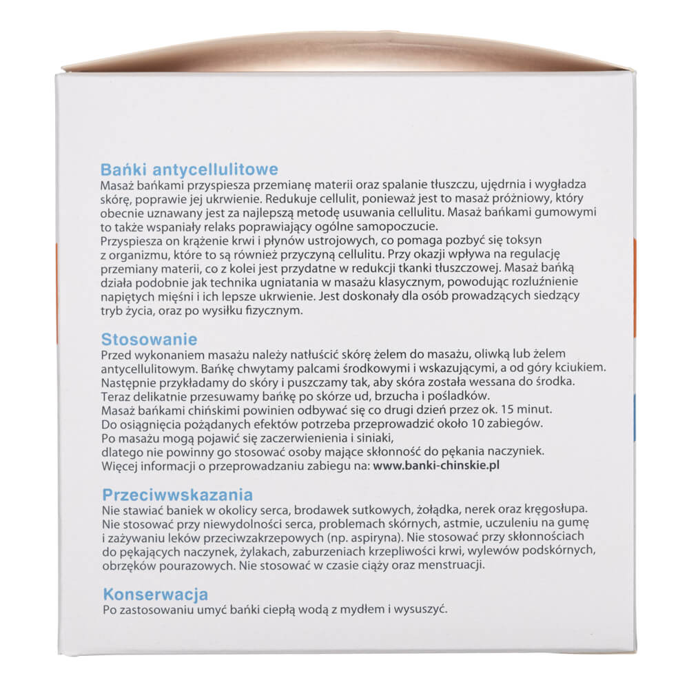 Chinese rubber bubbles can be used for acupuncture and massage, including anti-cellulite. They are easy to use. They can be placed anywhere on the body. They are made of flexible plastic and easier to use than traditional glass bubbles. Bubble massage speeds up the metabolism and fat burning, firms and smooths the skin. It reduces cellulite because it is vacuum massage, which is currently considered the best method for removing cellulite. Vacuum booths are increasingly common in beauty parlours. If the contents of your wallet do not allow you to use such treatments, Chinese bubbles are the best solution.