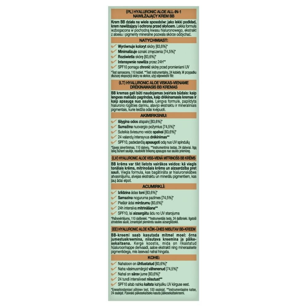 Garnier BB Cream is a multifunctional product that combines the properties of a light foundation, moisturiser and sun protection. Its lightweight formula, enriched with a hyaluronic acid derivative, aloe vera extract and mineral pigments, allows the skin to breathe and is suitable for all skin types. The BB cream instantly evens out skin tone, minimises signs of fatigue, brightens the complexion and intensely moisturises for 24 hours while providing SPF10 protection.