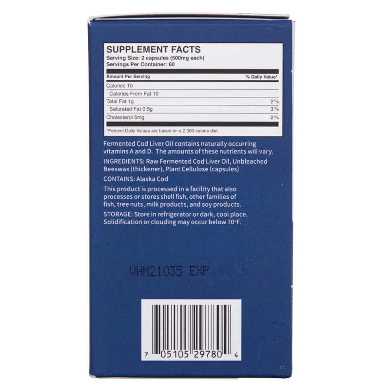 Raw Fermented Cod Liver Oil, Unbleached Beeswax (thickener), Plant Cellulose (capsules).