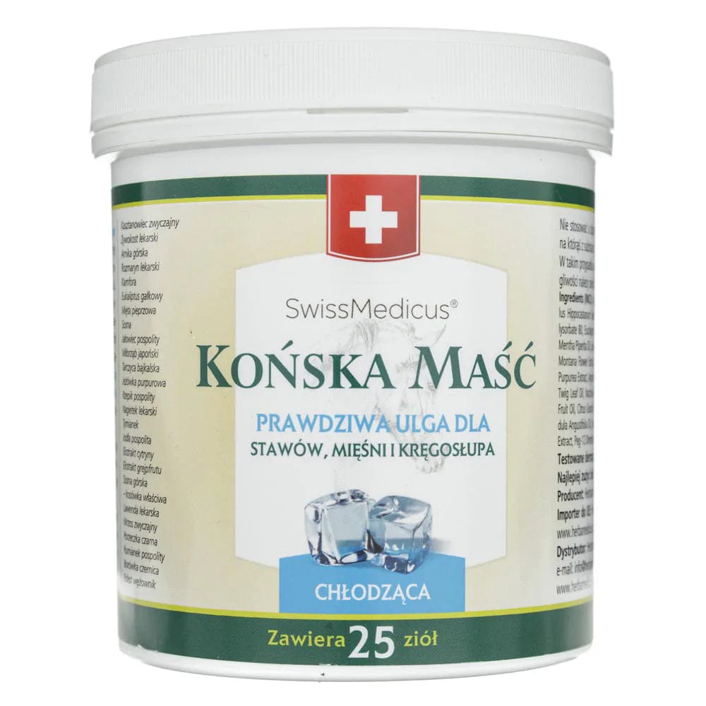 Horse ointment cooling ointment provides relief for joints, aching joints and fatigued spine. The preparation was developed on the basis of a Swiss recipe and includes 25 herbs and herbal extracts. Its quality is guaranteed by a formula that combines proven substances with a cooling effect.