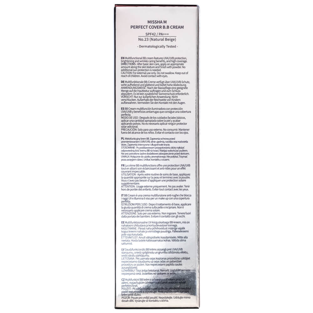 Missha M Perfect Cover B.B Cream SPF 42 PA+++ NO.23 Natural Beige - 50 ml is backordered and will ship as soon as it is back in stock.
