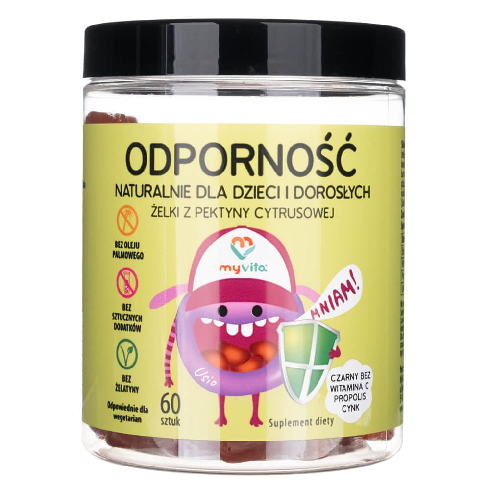 MytVita Immunity is a dietary supplement in the form of natural citrus pectin gels, suitable for children and adults. The natural ingredients contained in MyVita gels guarantee a delicious taste and an adequate portion of vitamins and other nutrients to support the proper functioning of the body. The gels contain an innovative Immuno Protect blend consisting of elderberry extract, propolis, zinc and vitamin C.