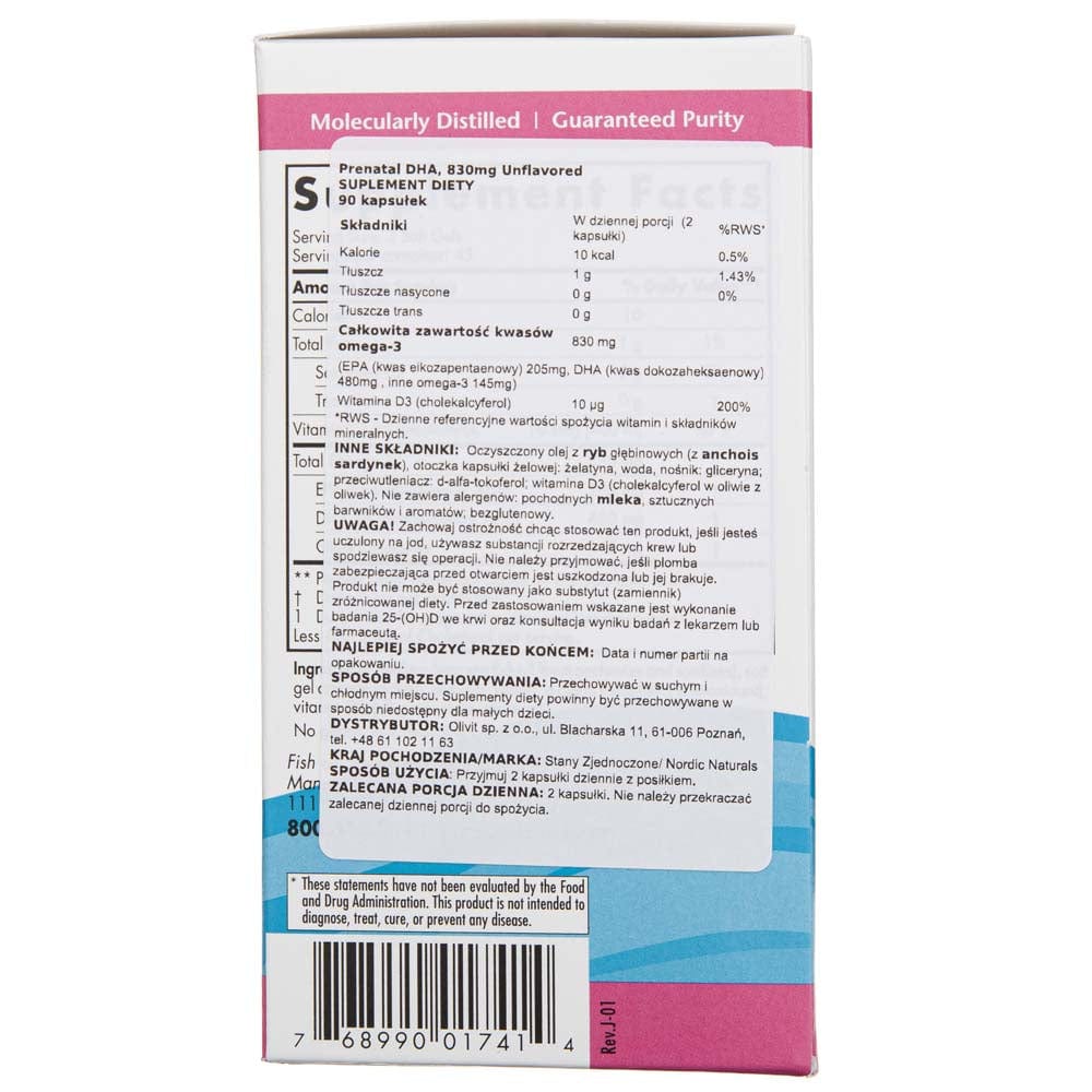 Nordic Naturals Prenatal DHA, Unflavored 830 mg - 90 Softgels