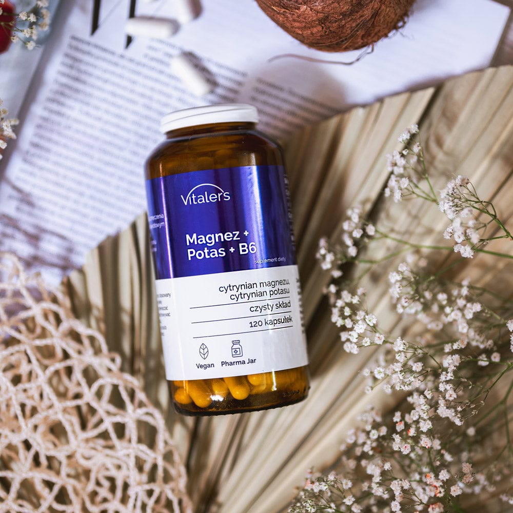 Vitaler's Magnesium 100 mg Potassium 150 mg B6 10 mg is a dietary supplement intended for use by adults. The formula uses the best-absorbed form of magnesium, namely citrate. Magnesium and potassium perfectly support the proper functioning of muscles, while vitamin B6 and magnesium help reduce feelings of fatigue and tiredness. This dietary supplement was developed for people who are looking for comprehensive support for healthy muscles and bones. The daily dose of (1 capsule) covers several times the daily requirement for the element in an average adult. The package contains 60 doses of the product in the form of vegan capsules, which is enough for two months of continuous supplementation.