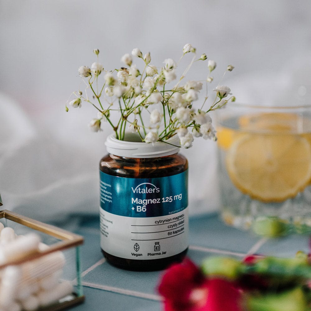 Vitaler's Magnesium 125 mg + B6 is a dietary supplement that meets the guidelines of a vegan and vegetarian diet. Thanks to the vitamin B6 contained in the product, the absorption of magnesium from the gastrointestinal tract is increased by 20-40%.