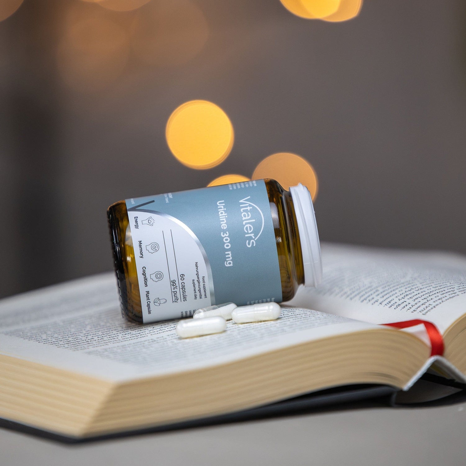 Uridine by Vitaler's is a dietary supplement for adults containing 300 mg of uridine monophosphate. Uridine, also known as UMP (uridine 5'-monophosphate), is a substance capable of crossing the blood-brain barrier, which is also a precursor in the production of phosphatidylcholine and a substrate for CDP-choline.